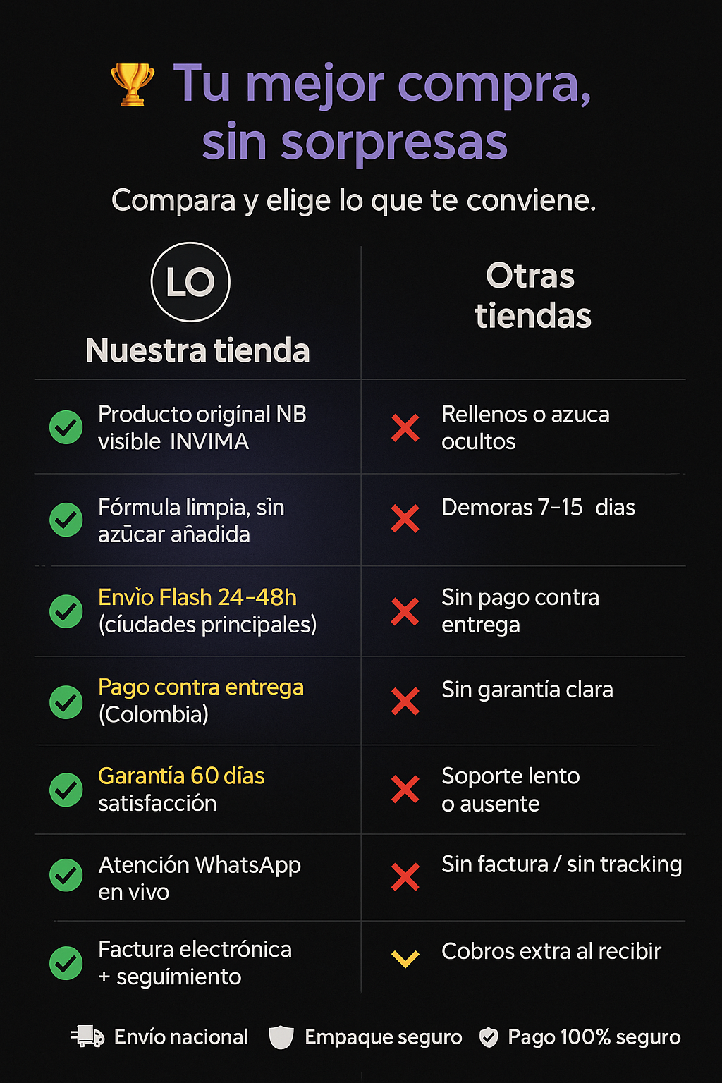 "La compra fue súper fácil y rápida. Me dieron mucha seguridad con el pago al recibir, lo cual me tranquilizó bastante. El producto es de buena calidad y la atención al cliente fue impecable."