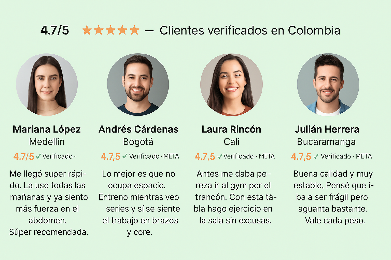 "Muy satisfecha con mi compra. La atención siempre cordial y rápida para resolver mis dudas. El sistema de pago contraentrega es una gran ventaja, transmite confianza. El producto cumplió con lo prometido."